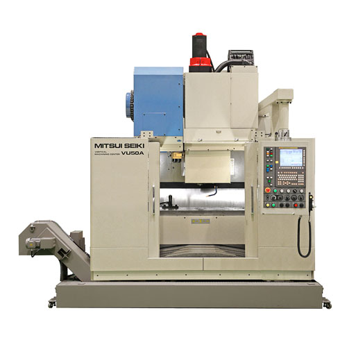 VU65A采用方形滑動導(dǎo)軌能夠保持長時間的高精度并實現(xiàn)高剛性。經(jīng)過熱處理的方形滑動導(dǎo)軌安裝在被刮研加工后已具有直線度·垂直度的面上。Y軸有4個方形滑動導(dǎo)軌。X軸即使移動到行程末端也不會出現(xiàn)懸臂現(xiàn)象。主軸的標準規(guī)格為高剛性齒輪驅(qū)動的50T 6,000min-1,還可以選擇50T 12,000min-1、40T 20,000min-1。