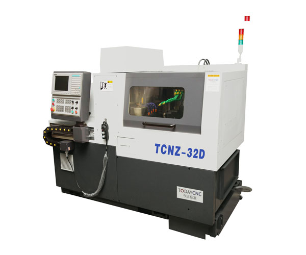 TCNZ-32D機(jī)床是屬于瑞士型高速精密數(shù)控縱切電腦車床(數(shù)控走心機(jī)).主軸為通孔式主軸,運(yùn)轉(zhuǎn)平穩(wěn);各軸配用進(jìn)口高精密直線導(dǎo)軌、滾珠絲桿及精密軸承;機(jī)床使用拍排式刀架排布和簡(jiǎn)易四軸軸臺(tái)及四軸動(dòng)力刀具。具有X1、Y1、Z1、X2、Z2、C1、C2(可選配Y2)共7個(gè)控制軸。并且還配備四軸鉆孔加工功能,可以完成零件軸端的鉆孔及攻絲的加工。側(cè)面可以鉆孔、攻絲、銑扁加工功能的動(dòng)力刀具功能模塊,完成各種軸件的精密鉆、銑加工。